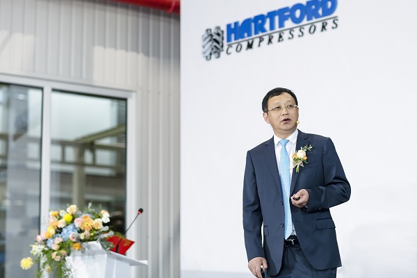 冰轮集团党委书记、董事长、总裁李增群发表了题为“以奋斗为伴 与卓越同行”的主题演讲。他表示,今天开业的哈特福德智能压缩机工厂,以“高效率、高品质做世界一流的压缩机产品”为目标,用数字技术统一大脑、统一执行、统一物联、统一协同,全过程的数字化达到了行业先进水平,可实现全封/半封/开启螺杆压缩机、离心压缩机、磁悬浮压缩机、气悬浮压缩机、高速无油活塞压缩机、高压隔膜压缩机等全品类柔性定制生产,年产压缩机万余台。与传统工厂相比,压缩机智能工厂员工减少50%、产能增加40%、交期缩短60%、设备物联率100%、数据打通率100%、质量一致性显著提升,生产效率是传统压缩机制造的3倍以上。